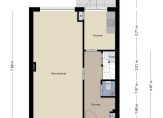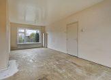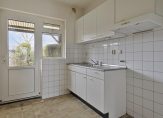 Hal met meterkast, toiletruimte, trapopgang naar de verdieping en provisiekast. De hal biedt toegang tot de woonkamer en de dichte keuken. De woonkamer beschikt over veel lichtinval door de grote raampartijen. De dichte keuken is voorzien van een eenvoudig recht keuken blok zonder inbouwapparatuur. Vanuit de keuken is er toegang tot de tuin.