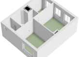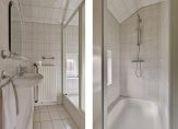 Op de 1e verdieping is een overloop met vaste kast. Verder zijn op deze verdieping 3 slaapkamers aanwezig en een compacte doucheruimte met wastafel. Dit is een keurige geheel betegelde sanitaire ruimte. Met een losse trap is toegang tot een vliering met daarop de opstelling van de Remeha combiketel uit 2017.