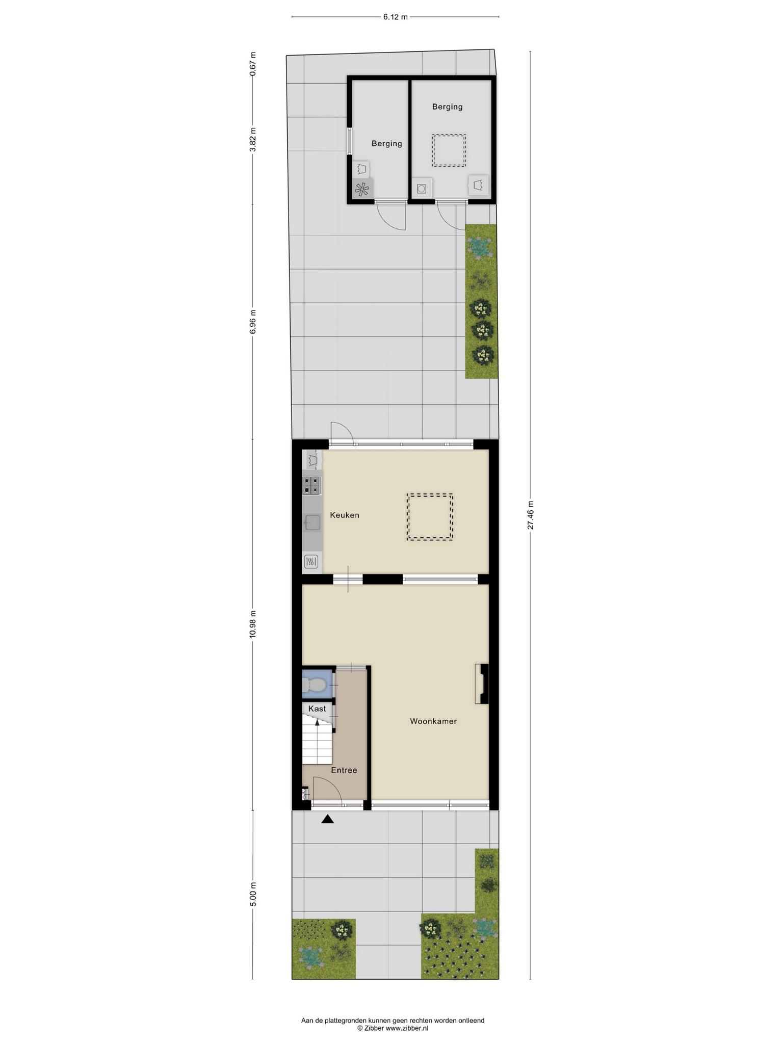 De verharde achtertuin is achterom bereikbaar via een brandgang. In de tuin staat een stenen berging verdeeld in twee delen en voorzien van elektra. Ideaal als klus- en stallingsruimte.