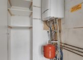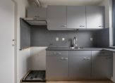 De dichte keuken is eenvoudig ingericht. U heeft genoeg bergruimte in de berging naast de keuken waar tevens de technische installaties hangen (afzuigunit en combiketel Remeha Calenta bj. ca. 2016).