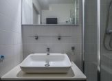 Beide slaapkamers, respectievelijk ca. 6,5 en 12 m² groot, zijn vanuit de hal te bereiken. De grootste slaapkamer heeft ook direct toegang tot het balkon. De badkamer is eenvoudig en beschikt over een douchecabine, wastafel met badmeubel en de wasmachine-aansluiting. Ideaal is de aparte toiletruimte voorzien van toilet met fontein.