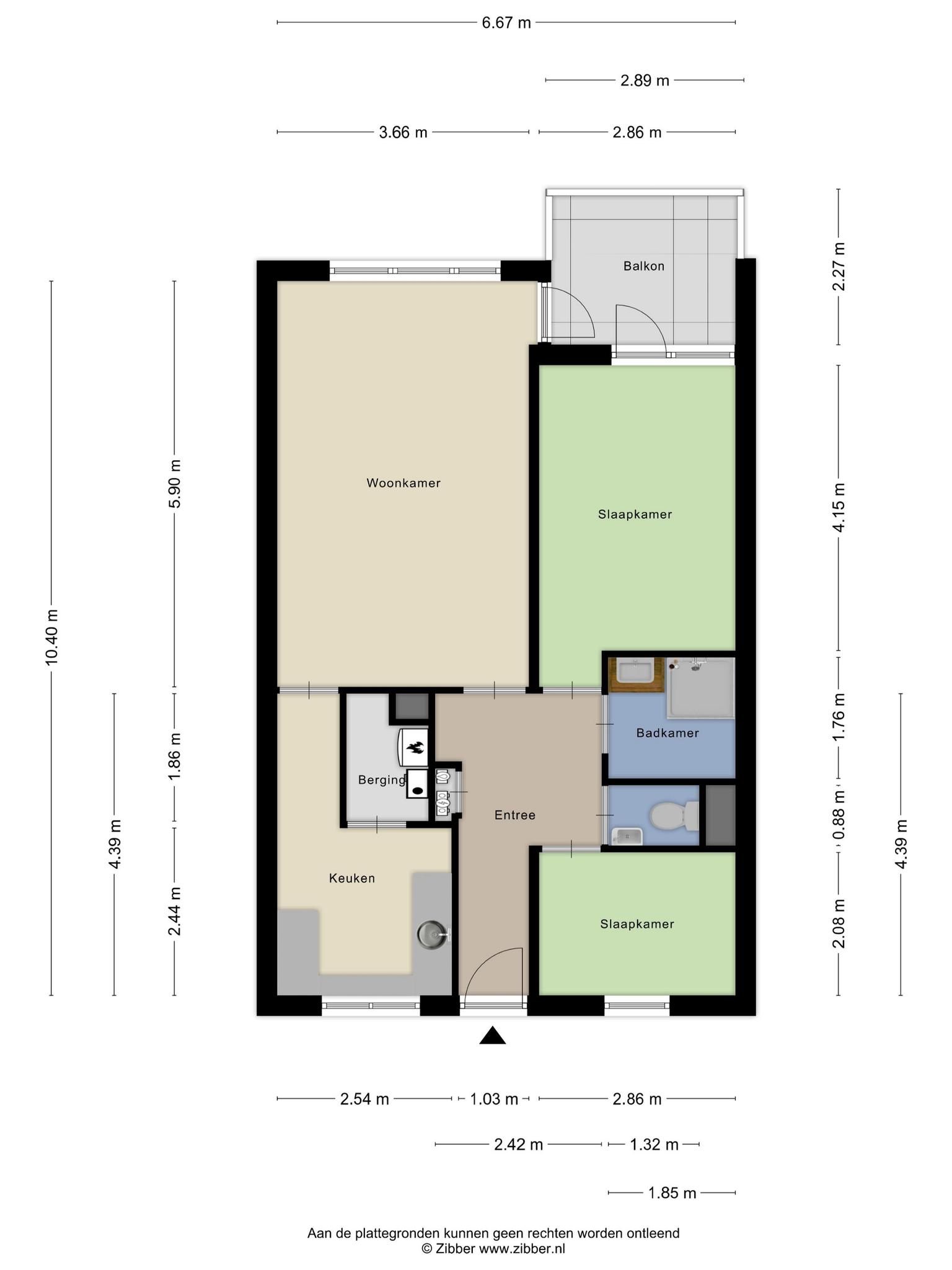 De woonoppervlakte bedraagt 65 m² exclusief balkon van ca. 6 m² en de berging is ca. 3 m² groot.