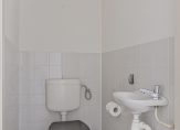 Beide slaapkamers, respectievelijk ca. 6,5 en 12 m² groot, zijn vanuit de hal te bereiken. De grootste slaapkamer heeft ook direct toegang tot het balkon. De badkamer is eenvoudig maar netjes en deze beschikt over een douchecabine, wastafelmeubel en witgoedaansluitingen. Er is een separate toiletruimte voorzien van toilet met fontein.