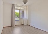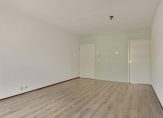 De woonkamer is afgewerkt met lichte wanden en de vloer is voorzien van laminaat. Vanuit de woonkamer kunt u rechtstreeks naar een ruim balkon met fraai uitzicht over de Nieuwe Markt, Velmolenweg en de Kastanjeweg.