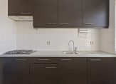 De dichte keuken is gelegen aan de achterzijde van de woning en is voorzien van een laminaatvloer. De keuken is ca. 10 jaar geleden vernieuwd met een modern keukenblok voorzien van gaskookplaat en afzuigkap. Daarnaast beschikt de keuken over een bergkast met daarin de combiketel (Nefit Topline ’06) en centrale afzuiginstallatie.