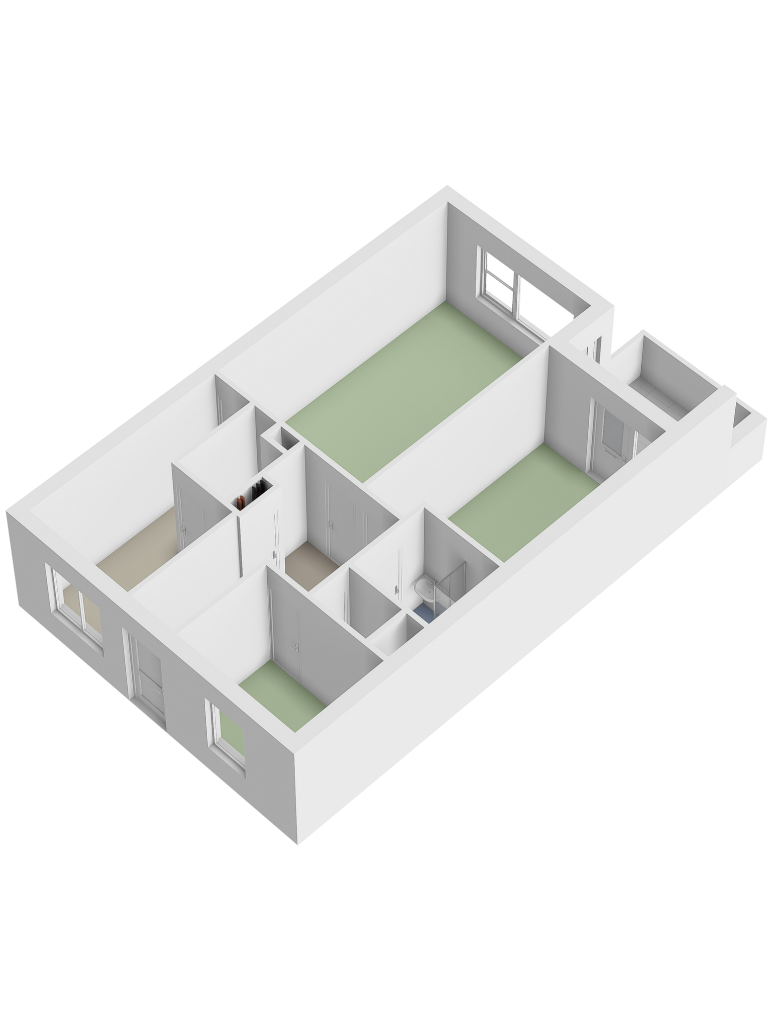 De hal is voorzien van de meterkast en verder zijn vanuit de hal zowel de twee slaapkamers, de badkamer, het separate toilet alsmede de woonkamer toegankelijk.