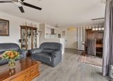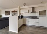 Aan het einde van de gang is er toegang tot de woonkamer, deze ruime leefruimte van circa 38 m² biedt voldoende ruimte voor een eet- en zitgedeelte. Er is toegang tot een balkon gelegen op het zuiden met uitzicht over de Wislaan en Karrevracht. De keuken staat in open verbinding met de woonkamer en is in 2013 voorzien van een moderne “Grando” keukeninrichting met gaskookplaat, afzuigkap, combi oven/magnetron, vaatwasser en koelkast. Tevens ligt er in het gehele appartement een keurige laminaatvloer.