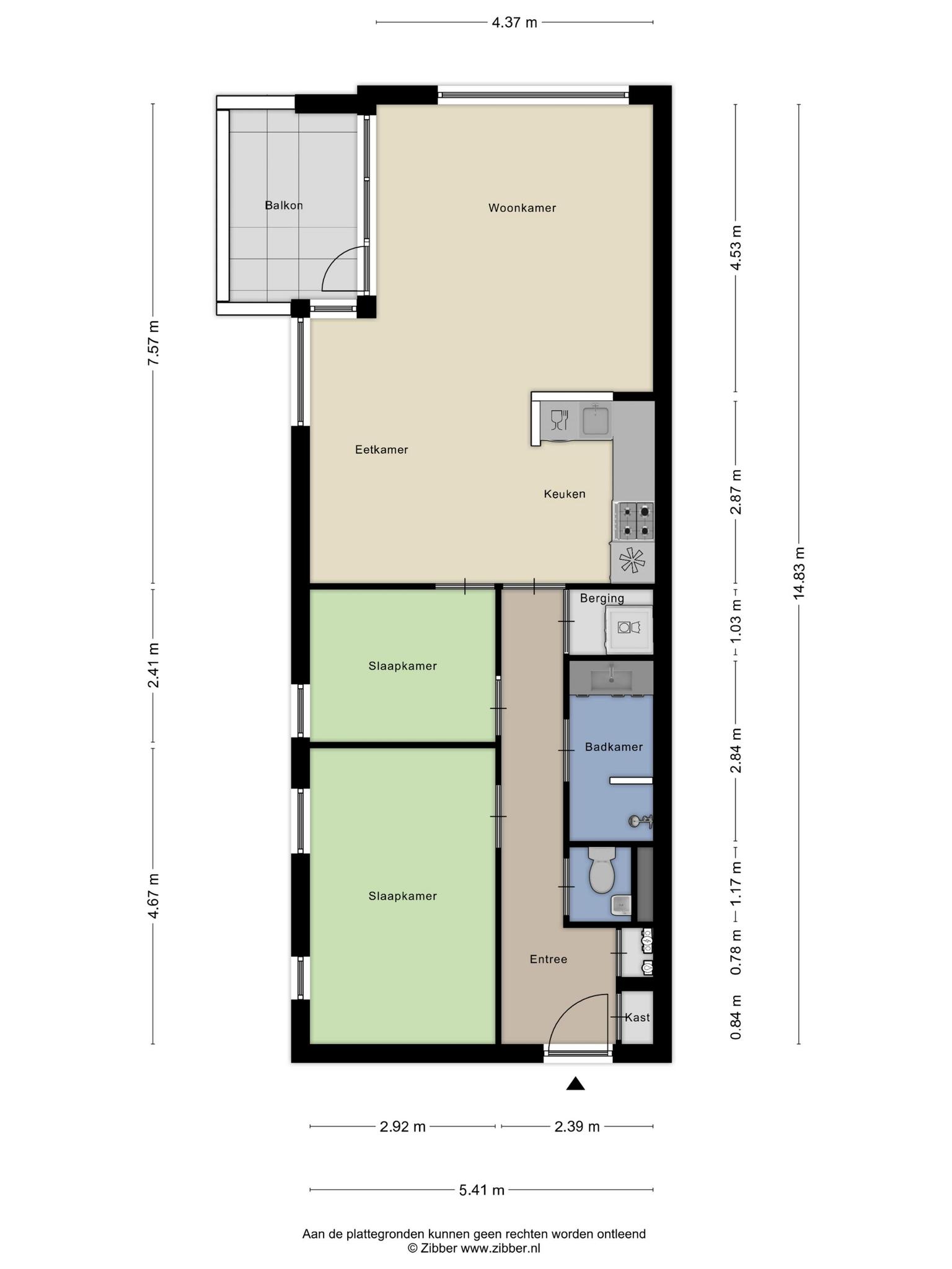 De ruime hal geeft toegang tot alle vertrekken. In de hal is tevens toegang tot de meterkast en cv-kast met Atag HR combiketel uit 2017. Aan de gang liggen de sanitaire ruimtes en slaapkamers. Er zijn twee slaapkamers in het appartement, welke respectievelijk 14 m² en 7 m² groot zijn. De toiletruimte is netjes met toilet en fontein. In de badkamer zijn een mooi wastafelmeubel en een grote inloopdouche aanwezig. Deze badkamer is in 2009 vernieuwd. In de gang is tot slot nog een vaste kast met aansluitingen voor de wasmachine.
