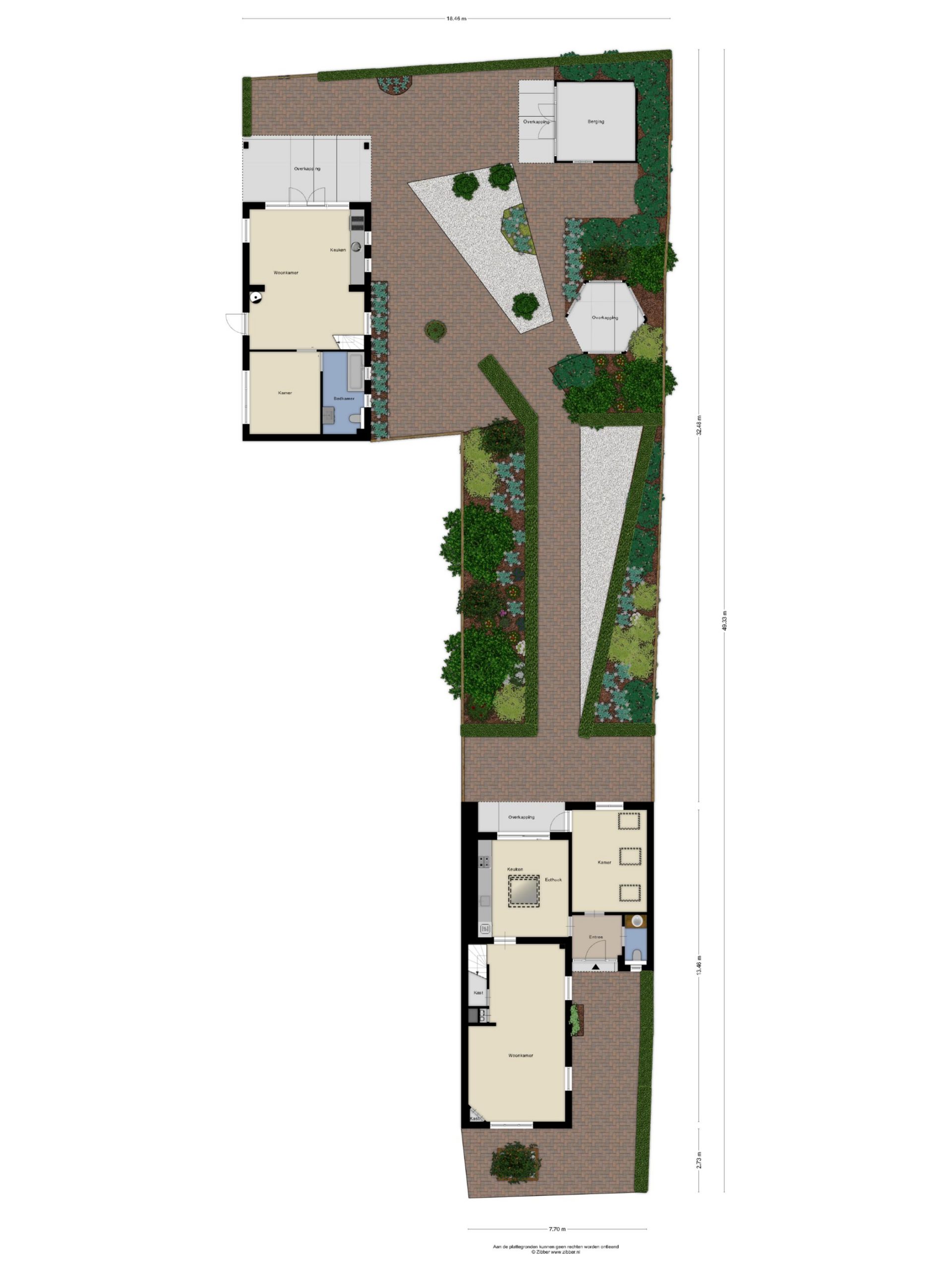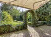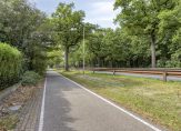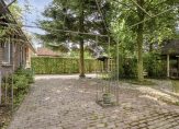 Rechts van de woning is een oprit die voor de bewoner vanuit de fietspad te bereiken is. Achter het huis ligt een diepe achtertuin met veel groen. Er is veel privacy en ruimte om de tuin naar eigen inzicht in te delen. In de tuin staat nog een prieel/overkapping van circa 22 m² en een houten tuinberging van circa 12 m², ideaal voor het tuingereedschap en/of het stallen van fietsen. De tuin is achterom bereikbaar, daar waar ook het bijgebouw is gesitueerd.