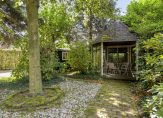 Op het achtergelegen perceel staat een volledig geïsoleerd vrijstaand bijgebouw dat momenteel is ingericht als mantelzorgwoning. Voor bewoning als bijvoorbeeld mantelzorg kan wel een indicatie of vergunning nodig zijn! Dit bijgebouw beschikt over een eigen entree die direct uitkomt in de leefruimte bestaande uit een woonkamer met open keuken. De grote raampartij met openslaande deuren naar het terras zorgt voor veel lichtinval. In de leefruimte ligt een houten vloer en staat een gaskachel voor verwarming. Er hangt ook een airco voor koeling en/of verwarming van de ruimte. Op de begane grond is een slaapkamer en badkamer met ligbad voorzien van douchemogelijkheid, wandcloset en wastafel met meubel. Er is een open trap vanuit de leefruimte naar de verdieping met werkkamer en opstelling van de Nefit HR combiketel uit circa 2008. Aan de voorzijde van het bijgebouw is een terras met overkapping.