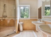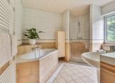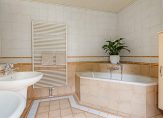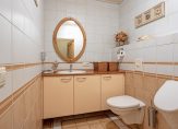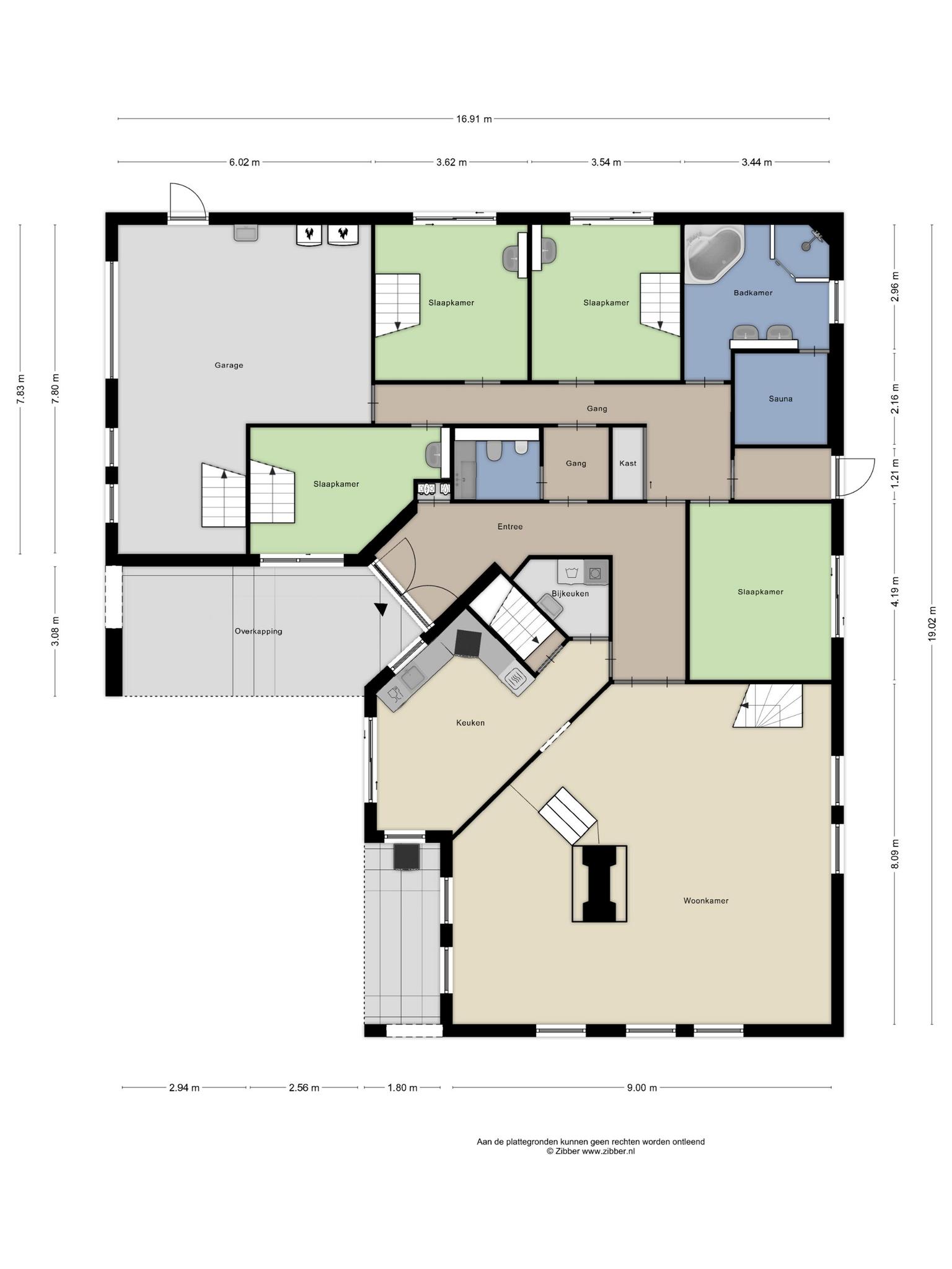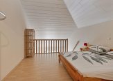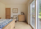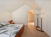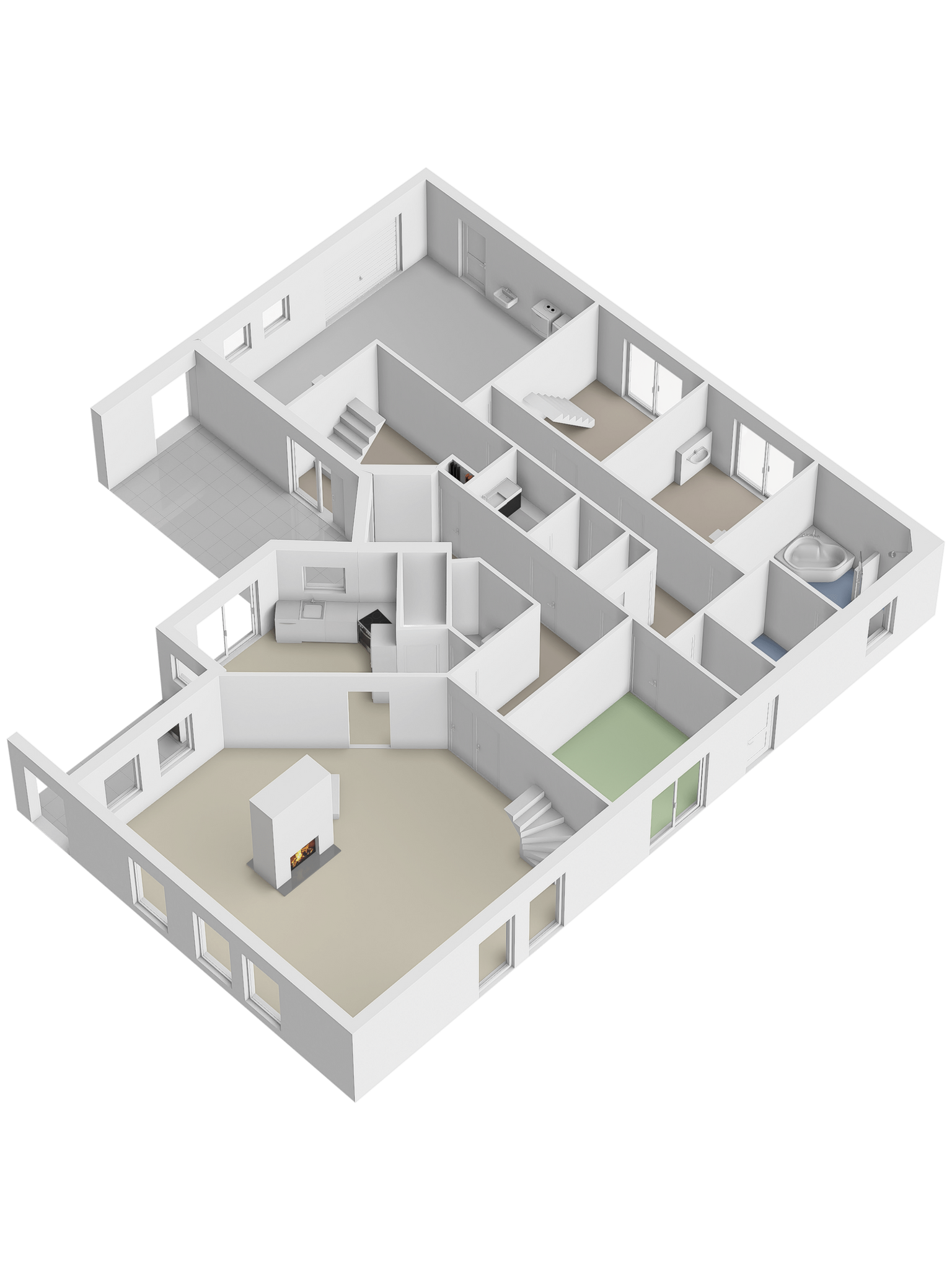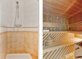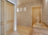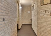 Vanuit de hal is toegang tot een lange gang met daarin de verschillende slaapkamers en badkamer. Er is verder een portaal met ruime toiletruimte voorzien van wandcloset, urinoir en wastafel met meubel. De grootste slaapkamer heeft een schuifpui naar de tuin. Er zijn nog 3 slaapkamers met eigen wastafel, waarbij alle slaapkamers vaste trappen hebben naar de verdieping waarop slaapruimtes zijn. Hartstikke leuk voor kinderen. De badkamer is compleet uitgevoerd met douche, ligbad, dubbele wastafel en een heerlijke sauna.