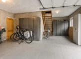 Tot slot is er nog een tochtportaal met buitendeur naar de tuin en een grote inpandige garage. Deze garage is circa 38 m² groot en voorzien van een tegelvloer. In de garage hangt de Nefit HR combiketel, is toegang tot een grote bergzolder van 15 m², is een loopdeur naar de tuin en een elektrische paneeldeur zodat het makkelijk is om een auto binnen te parkeren.