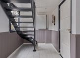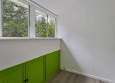 Op de 1e verdieping is een overloop met berg-/cv.-ruimte. Hier hangt de Remeha combiketel. Via een lange gang is toegang tot 3 slaapkamers. De grootste slaapkamer is gelegen boven de woonkamer en beschikt over openslaande deuren naar het balkon met uitzicht over de tuin.