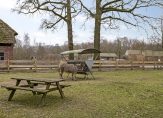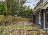 De tuin is rondom de woning gelegen, maar vooral aan de achterzijde. Er staan vele bomen op en rondom het perceel. De tuin is dan ook als een soort bosgebied in gebruik. Aan het huis is voldoende ruimte voor een groot terras. In de tuin staat een eenvoudig houten tuinberging, ideaal voor wat tuingereedschap en het stallen van fietsen. Voor de auto’s is voldoende ruimte aan de voorzijde van de woning, waar meerdere auto’s op eigen terrein geparkeerd kunnen worden.