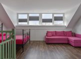 Op de 1e verdieping zijn 3 slaapkamers en een badkamer. Deze keurige badkamer is compleet uitgevoerd met ligbad, douche, wastafel en wandcloset. In de betegelde badkamer ligt eveneens vloerverwarming. De slaapkamers zijn bij wanden en plafond keurig afgewerkt met stucwerk, op de vloer ligt PVC en er zijn rolluiken aanwezig bij de raamkozijnen. De deurkozijnen en binnendeuren zijn allen uitgevoerd in hardhout. Met een vaste trap is toegang tot de 2e verdieping. Deze open zolderruimte heeft een brede dakkapel met weids uitzicht richting de parken die aan de achterzijde van de woning zijn gelegen en is ingericht als 4e slaapkamer. Op deze verdieping zijn ook de witgoedaansluitingen.