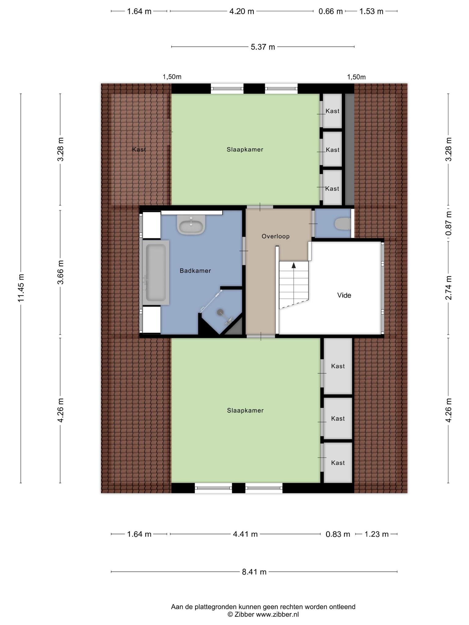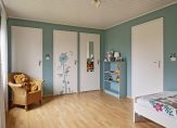 Op de 1e verdieping is een ruime overloop met toiletruimte. Verder zijn op de verdieping 2 zeer royale slaapkamers, welke kamers ook beschikken over meerdere inbouwkasten. De grote badkamer is in 2002 vernieuwd en voorzien van een ligbad, douche, wastafel en designradiator. In de badkamer is ook elektrische vloerverwarming aanwezig.