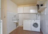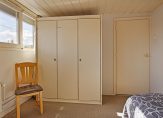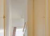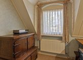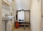 Op de 1e verdieping is een overloop met toegang tot 3 slaapkamers en een cv.-ruimte met opstelling van de Nefit combiketel en een wastafel. Twee slaapkamers hebben een dakkapel en de grootste slaapkamer beschikt over een grote schuifkast. Een luik met vlizotrap vanuit de overloop geeft toegang tot de bergzolder.