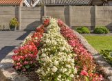 De tuin is maar liefst 25 meter diep, gelegen op het zuiden en voorzien van een groot gazon en terras aan het huis. Er is een put geslagen om met grondwater de tuin te kunnen sproeien. De vrije ligging op zonzijde, maken dit tot een heerlijke tuin om te verblijven. Naast de woning ligt een flinke oprit waar met gemak meerdere auto’s op eigen terrein geparkeerd kunnen worden. Aansluitend is er een garage met daarnaast een eenvoudige carport. De garage is 25 m² groot en voorzien van elektra. Een fijne klus-/hobbyruimte. Er zijn spouwmuren aanwezig bij de garage en op het zadeldak liggen golfplaten. Er is een kleine zolderruimte Achter de garage is een flinke berging gebouwd van nog eens ruim 25 m². Een ideale opslag-/stallingsruimte.