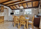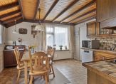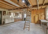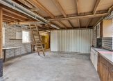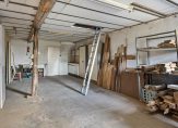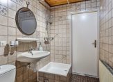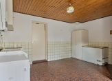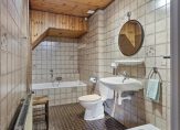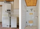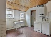 Deze inpandige badkamer uit 1982 is voorzien van ligbad, douche, toilet en wastafel. In de grote berging/bijkeuken zijn de aansluitingen voor het witgoed, is een toiletruimte, hangt de Nefit HR combiketel uit 2015 en is toegang tot een grote inpandige schuur/garage met openslaande deuren naar de oprit voor de boerderij. In deze garage is een luik naar een grote open zolderruimte. Vanuit de bijkeuken/berging is ook direct toegang tot de achtertuin.