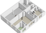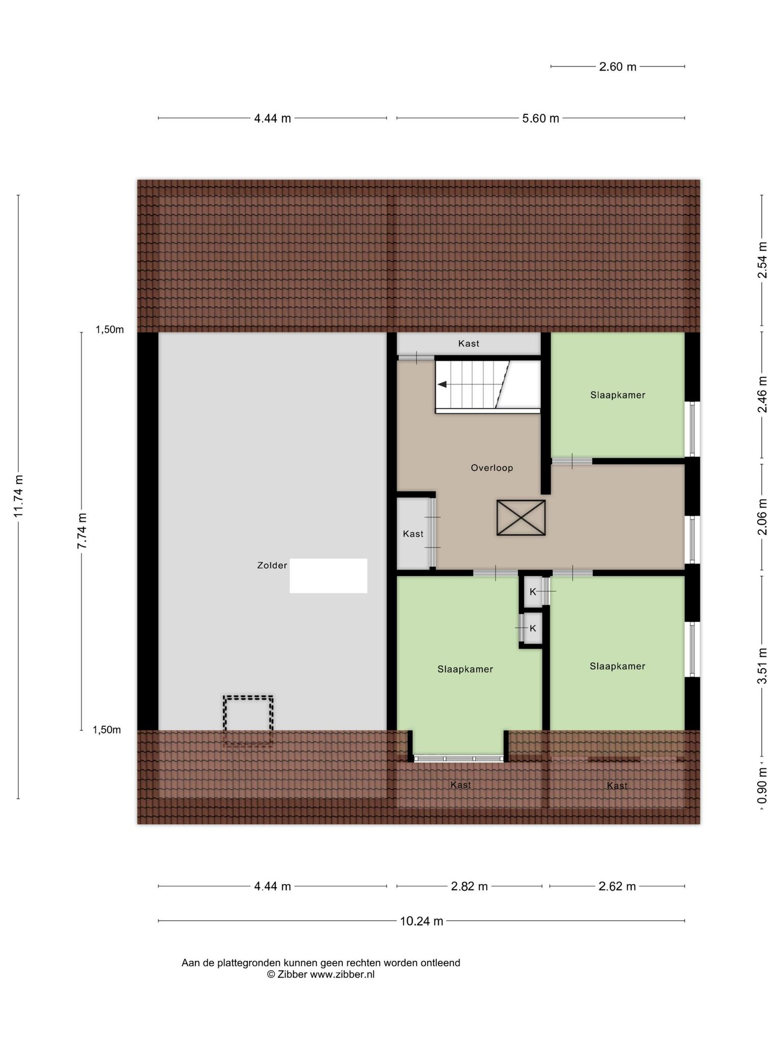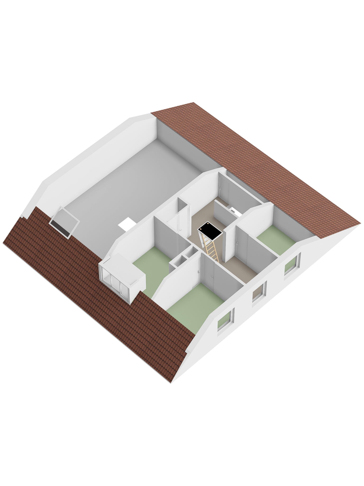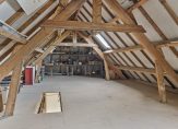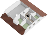 Op de 1e verdieping boven het woongedeelte is een overloop met toegang tot 3 slaapkamers, waarvan 1 kamer met dakkapel. Via een vlizotrap is vanuit de overloop nog toegang tot een vliering/bergzolder.