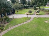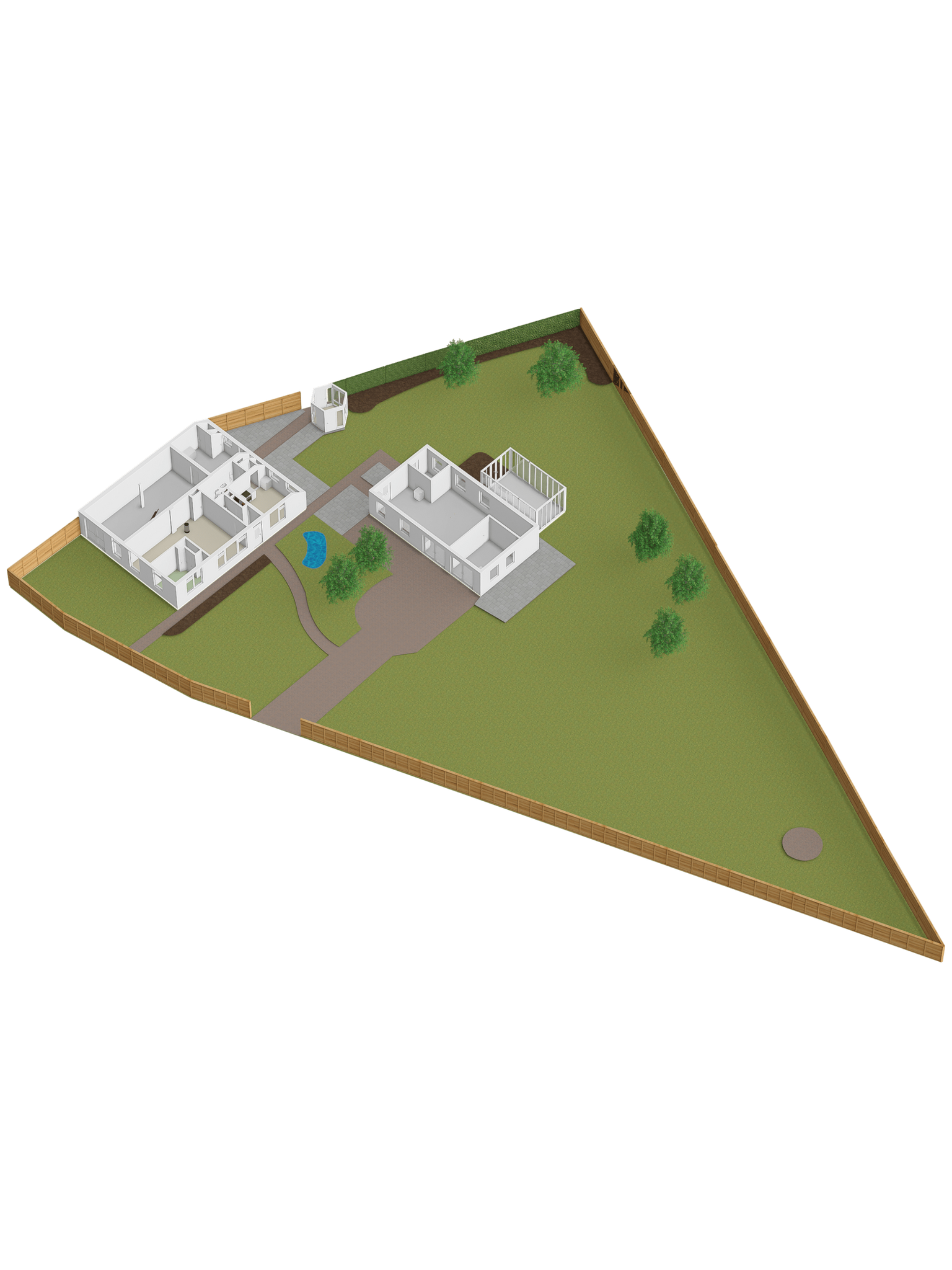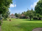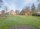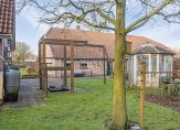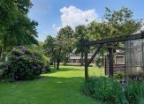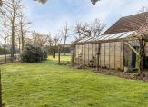 Bij de boerderij ligt een prachtige tuin met bomen, plantenborders en een groot gazon. Er is rondom de tuin hekwerk aanwezig. Achter de boerderij is een groot terras en staat een leuk theehuisje. Het terras loopt over in de tuin die zowel achter de woning als aan de zijkant is gelegen. Aan de linkerzijde van de boerderij is een oprit naar de naar de inpandige garage. De oprit ligt rechts van de boerderij en komt uit bij een grote vrijstaande garage. Deze garage is in spouw gebouwd, beschikt over een smeerput en een tweetal openslaande garagedeuren. Het bijgebouw is ingedeeld met een garage/stallingsruimte, fietsenberging en een grote open garage/hobbyruimte met toegang tot een grote zolderruimte. Kortom, een heerlijke hobby-/klusruimte. Achter de garage is nog een grote broeikas aanwezig, ideaal voor echte tuinliefhebbers.