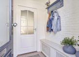 Vanuit de leefruimte is direct toegang tot de tuin, maar ook tot de berging/bijkeuken. Deze ruimte is multifunctioneel en hier is de woning ook ‘achterom’ toegankelijk. In deze bijkeuken/berging hangt de cv.-ketel, zijn de witgoedaansluitingen, is verwarming, water en elektra aanwezig en verder veel praktische kastruimte. Aan de achterzijde is een relaxruimte ingericht met een sauna, douchecabine en wastafel.