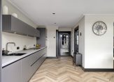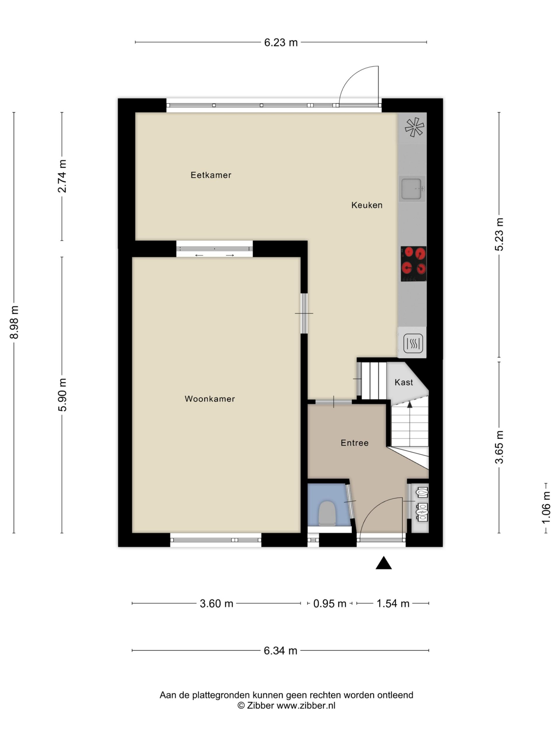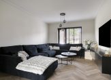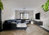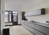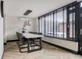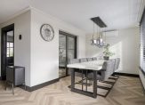 De hal is voorzien van vernieuwde meterkast, modern toilet, trapopgang naar de verdieping en geeft toegang tot de woonkamer. De woonkamer is gelegen aan de voorzijde van de woning. Middels schuifdeuren is er toegang tot woonkeuken. De eetkamer is gesitueerd in de aanbouw van de woning, beschikt over grote raampartijen waardoor er veel lichtinval is en er is de beschikking over een airco. De moderne en luxe keukeninrichting is voorzien van een een inductiekookplaat met geïntegreerde afzuiging, combi oven/magnetron, koelkast, vrieskast en vaatwasser. De gehele begane grond is voorzien van een stijlvolle visgraat PVC-vloer met vloerverwarming en strakke wandafwerking welke zorgen voor een moderne uitstraling.