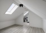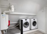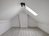 De zolderverdieping is bereikbaar via een vaste trap. Hier vind je een derde slaapkamer met dakraam en bergruimte achter de knieschotten. Daarnaast tref je op de voorzolder de cv-combiketel en aansluitingen voor het witgoed.
