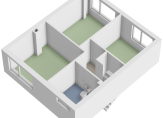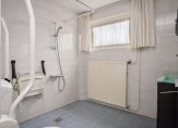 Op de 1e verdieping heeft de woning een overloop met toegang tot 3 slaapkamers en een badkamer. Deze functionele badkamer beschikt over een douche, wastafel en toilet. Alle slaapkamers hebben laminaatvloeren en 1 slaapkamer beschikt over een wastafel. Met een vaste trap is toegang tot de 2e verdieping met een overloop en ruime 4e slaapkamer. Op de overloop hangt de cv.-ketel.
