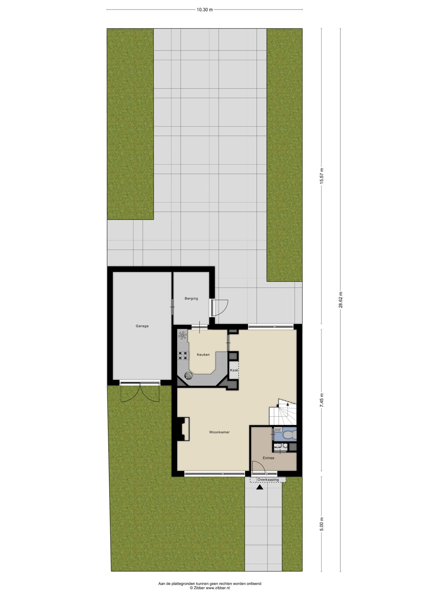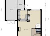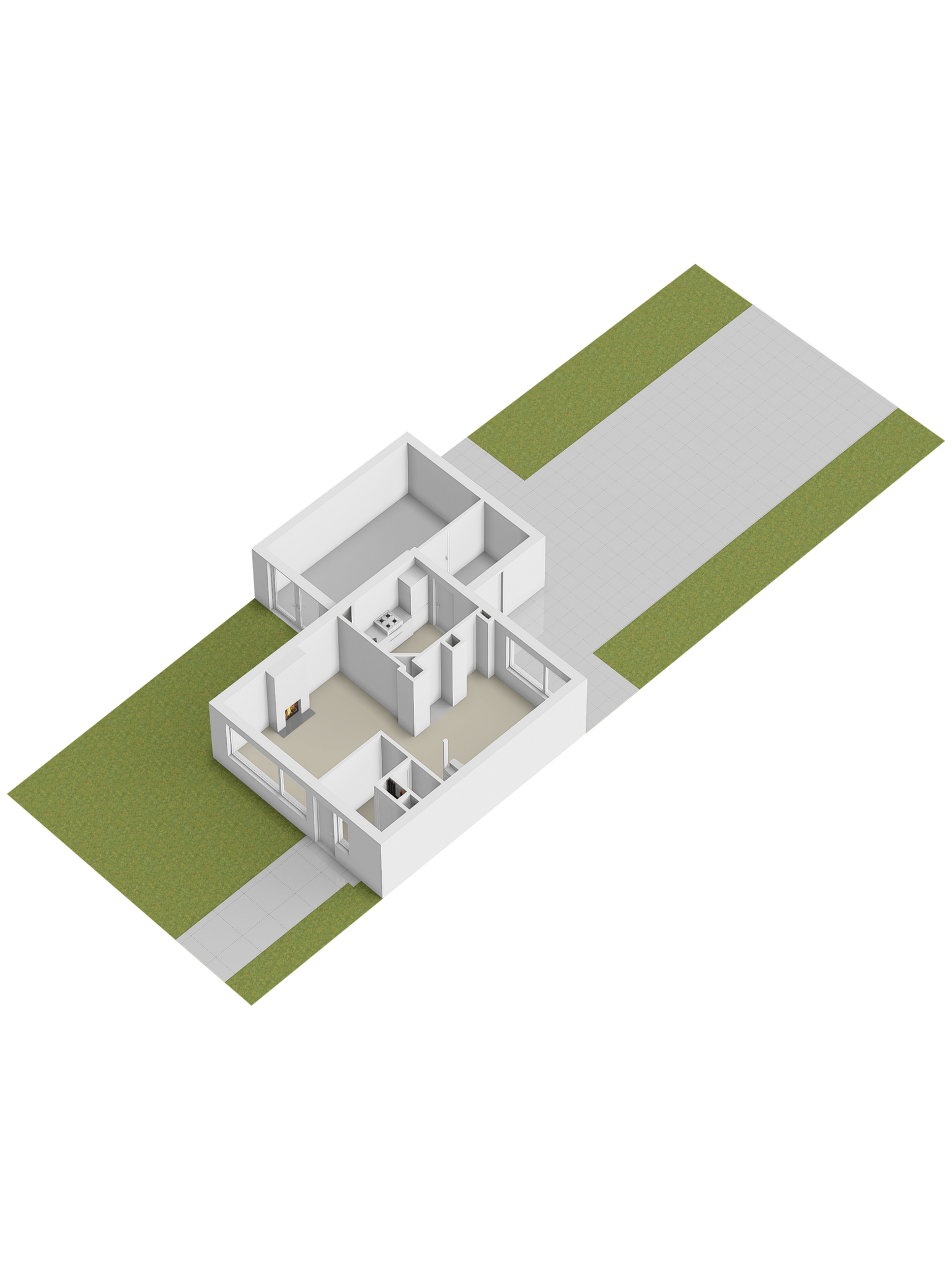 Hal met toiletruimte en meterkast. De royale woonkamer heeft zithoek aan de voorzijde met schouw ten behoeve van een open haard. Aan de achterzijde is voldoende ruimte voor een grote eettafel. Er ligt een houten vloer in de woonkamer. De dichte keuken heeft een U-opstelling met oven, gaskookplaat en koelkast (2 jaar oud). Het is eenvoudig te realiseren om de keuken open te maken met de woonkamer. Achter de keuken is een praktische bijkeuken met deuren naar de tuin en garage. Deze inpandige garage beschikt over verwarming en elektra. Er zijn openslaande deuren naar de oprit aan de voorzijde.