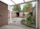 Voor de woning ligt een ruime onderhoudsvriendelijke tuin voorzien van kunstgras en vaste plantenborders met beregening. Zo heeft u in de voortuin voldoende privacy omdat het huis een eindje van de straat af staat en heeft u een leuk uitzicht vanuit de woonkamer. Achter de woning ligt een gezellige vrije tuin welke is ingericht met een groot terras en mooie plantenborders. Lekker zonnig en heel vrij gelegen! U kunt ook heerlijk beschut buiten zitten onder de veranda aan huis. Achter in de tuin staat een stenen tuinberging voor stalling van uw fietsen en voor het tuingereedschap.