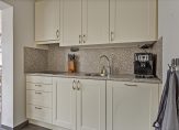 Hal met meterkast en keurige toiletruimte uit 2017. De woonkamer is ruim van opzet door de aanbouw aan de achterzijde. Over de gehele benedenverdieping ligt dezelfde tegelvloer met vloerverwarming. In de woonkamer is nog een gesloten gashaard geplaatst, die naast gezelligheid ook kan zorgen voor verwarming. De keuken is uit 2004 en compleet uitgevoerd met onder andere een vaatwasser, combi oven/magnetron, koelkast, inductiekookplaat, vrieskast en apothekerskast. Er is een voorraadkast de keuken onder de trap naar de 1e verdieping.