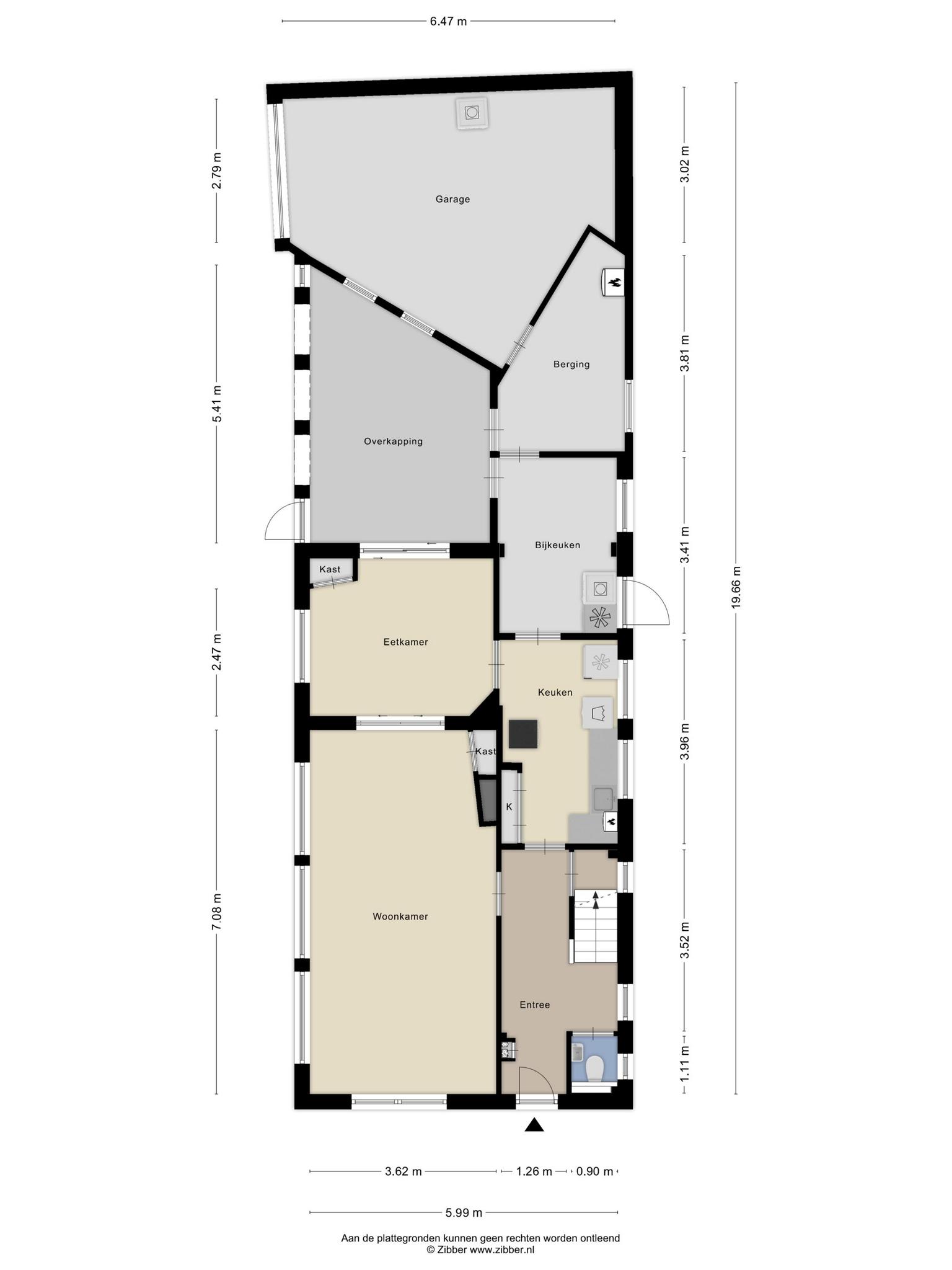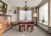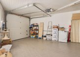 Entree met meterkast, toiletruimte met wandcloset en fontein en trapopgang naar boven. Onder de trap is toegang tot een ruime kelder waar u genoeg voorraad droog en koel kunt bewaren. De lichte woonkamer is totaal 38 m² groot en bestaat uit een zitkamer en eetkamer welke gescheiden kan worden met fraaie glas-in-lood ensuite-schuifdeuren. Er zijn twee vaste kasten. Rondom zijn ramen waardoor u verzekerd bent van veel lichtinval en een leuk uitzicht. Een schuifpui geeft toegang tot het overkapte buitenterras. De dichte keuken is toegankelijk vanuit de hal en de eetkamer en is voorzien van een eenvoudige inrichting. Vervolgens komt u in de bijkeuken met de witgoedaansluiting. Vanuit hier is er zowel een deur naar de tuin aan de linker- als de rechterzijde van de woning. Ook is er nog volop bergruimte in de berging en ruime garage. Deze garage is voorzien van een elektrische garagedeur. Parkeren kan op uw eigen terrein voor de garage. Tussen de garage en de eetkamer is een overkapping waar u een heerlijk beschut terras heeft. De totale zijtuin is ca. 6 m diep x 21 m breed waardoor er naast parkeergelegenheid een mooie tuin overblijft. U kunt er desgewenst voor kiezen de tuin te vergroten.