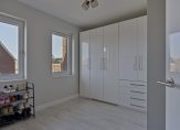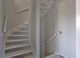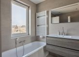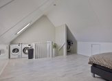 De 1e verdieping heeft een overloop, riante badkamer en 3 slaapkamers waarbij de grootste slaapkamer is uitgevoerd met een vaste kastenwand. Op de vloeren ligt laminaat met vloerverwarming en de muren/plafonds zijn ook hier strak gestuukt. Alle slaapkamers hebben rolluiken. De badkamer is compleet en luxe uitgevoerd met ligbad, inloopdouche, wandcloset en wastafelmeubel. Met een vaste trap is toegang tot de 2e verdieping met dakraam, opstelling Nefit HR combiketel, mechanische afzuigunit en de opstelling voor het witgoed. Hier is een grote open zolderruimte waar met gemak een 4e slaapkamer te maken is.