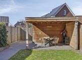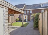 De tuin is verzorgd en voorzien van een terras, gazon en nette schutting. Aan de achterzijde is een poort, waardoor de tuin achterom bereikbaar is via een pleintje. Door dit pleintje is er ook meer privacy aan de achterzijde in de tuin. In de tuin staat een houten tuinberging, welke is voorzien van elektra. Aan de berging is een overkapping gebouwd. Dit zorgt voor een beschutte plek om van de tuin te genieten. Door de ligging op het westen is sprake van een zonnige tuin.