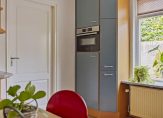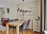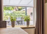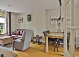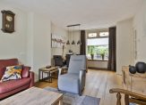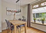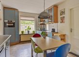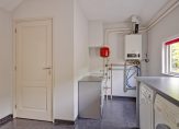 Entree met meterkast en trapopgang, vervolgens kunt u rechtsaf naar de badkamer of rechtdoor naar de woonkeuken. De complete luxe geheel betegelde badkamer is ingericht met ligbad, douchecabine en wastafel met badmeubel. Er is een designradiator en vloerverwarming. De woonkeuken is voorzien van een nette inrichting met volop bergruimte en diverse inbouwapparatuur zoals een gaskookplaat, afzuigkap en nieuwe vaatwasser en combi-oven-magnetron. Onder de trap treft u een kelderkast. Vanuit de keuken is de woonkamer en de bijkeuken toegankelijk. De woonkamer is 21 m² groot en netjes afgewerkt met een eikenhouten vloer en gestukadoorde wanden en plafond. Rondom heeft u een heerlijk vrij en groen uitzicht in uw eigen tuin. De begane grond is voorzien van isolerende beglazing met sfeervolle glas-in-lood bovenlichten. De praktische bijkeuken biedt plaats aan de wasmachine-aansluiting, de opstelling van de combiketel (Nefit 2017) en een keurige moderne toiletruimte met wandcloset en fontein. Vanuit hier is er toegang tot de achtertuin.