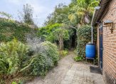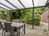 Aan de achterzijde van de woning is een veranda geplaatst, u heeft hier een heerlijk beschut terras. De privétuin is ook geheel vrij gelegen te midden van groen en fluitende vogeltjes. Het deel van de tuin achter de schuur en de privétuin heeft een afmeting van ongeveer 50 meter diep en 25 meter breed en is grotendeels weelderig begroeid waardoor moeilijk begaanbaar.