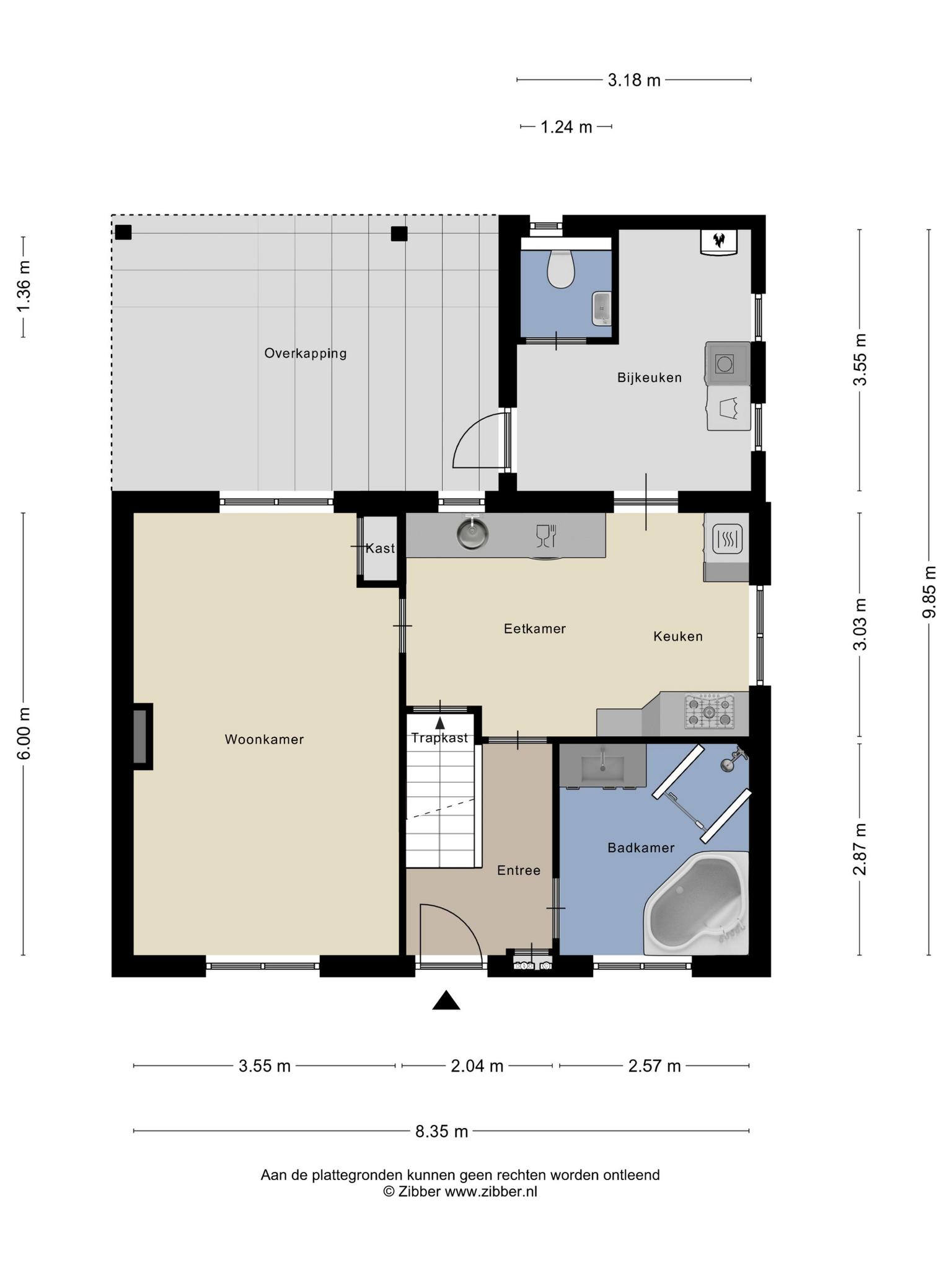 De gebouwgebonden buitenruimte bedraagt 20 m² (dit is de overkapping aan de achterzijde van de woning).