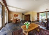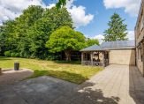 Via de linkerzijde van het perceel komt u bij de entree van de woning. U komt binnen in een royale hal. Hier vindt u tevens de garderobe, een toiletruimte en een stijlvolle bordestrap naar de 1e verdieping. Vanuit deze hal is er rechtsaf toegang naar de slaapkamer/badkamer in het praktijkdeel en linksaf toegang tot het woondeel aan de tuinzijde. Een zeer royale woonkamer van ca. 51 m² welke zowel aan de voor- als achterzijde van het huis grote raampartijen heeft tot aan de grond, past perfect bij de hedendaagse wensen voor een licht en modern huis met zicht op de tuin. De woonkamer is afgewerkt met een natuurstenen vloer, heeft een schuifpui naar de tuin en een sfeervolle gashaard. Ook is er een aparte speel-/werkkamer met zicht op de voortuin. De keuken is naast de woonkamer aan de tuinzijde gesitueerd en voorzien van een eenvoudige inrichting. Naast de keuken komt u in een praktische bijkeuken met de witgoedaansluitingen en installaties voor warm water en heteluchtverwarming. Via de bijkeuken is er toegang naar een multifunctionele ruimte aan de tuinzijde, ideaal als hobbyruimte voor jong en oud en voor feestjes. Er is volop bergruimte en stallingsruimte in de berging en dubbele garage.