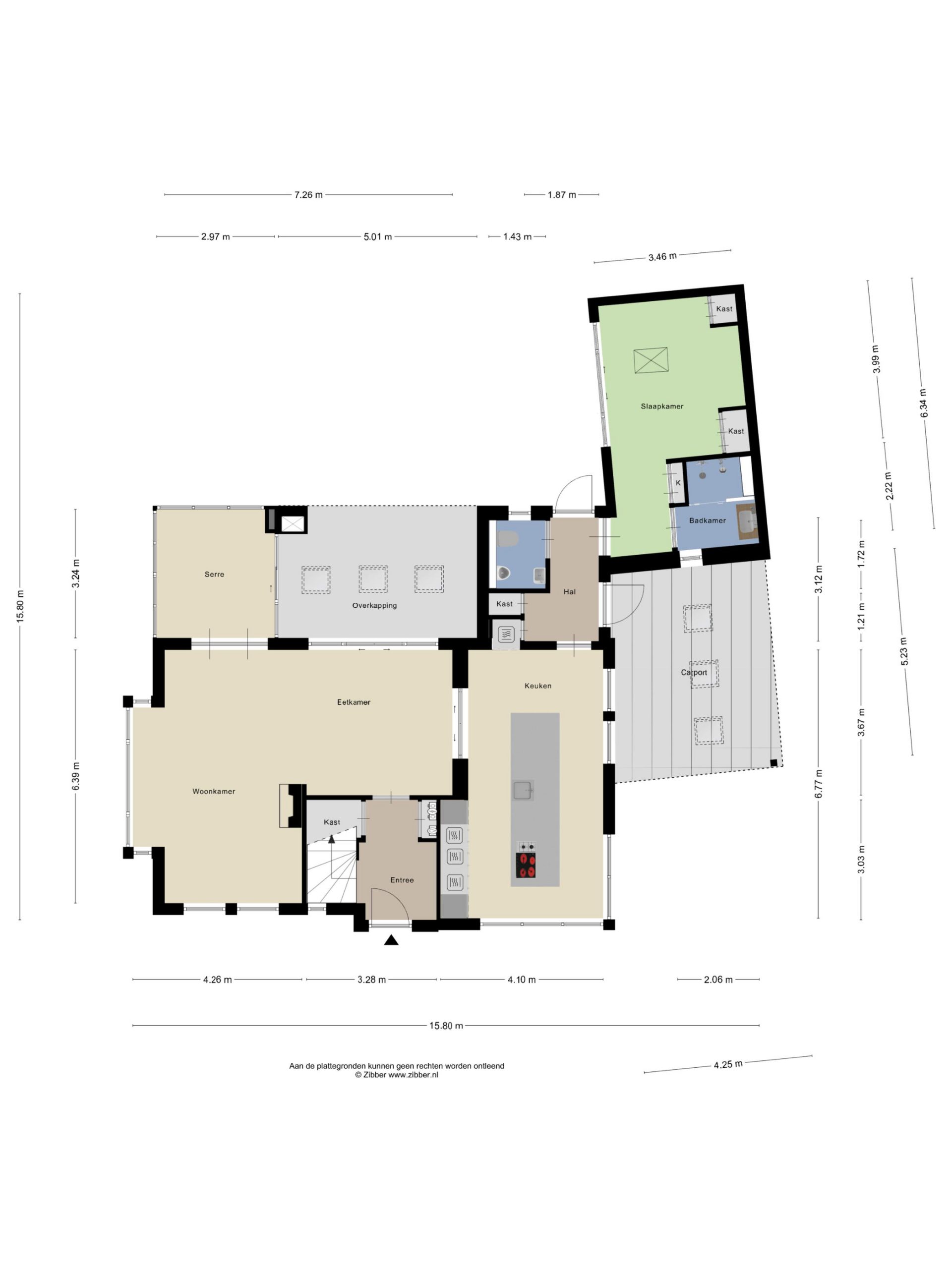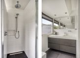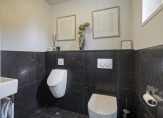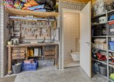 De begane grond is voorzien van vloerverwarming. Vanuit de woonkeuken komt u in de bijkeuken, een praktische bergruimte en verbinding naar de tuin, de carport en de voormalige garage, die is omgebouwd tot slaapkamer met eigen badkamer op de begane grond. Deze ruimte is ook uitermate geschikt voor senioren of minder valide mensen en is keurig afgewerkt. Een schuifpui biedt ook rechtstreeks toegang tot de tuin. De bijbehorende badkamer is ingericht met een inloopdouche en luxe badmeubel met wastafel. Via een vlizotrap is er nog toegang tot een flinke bergzolder boven de slaap-/badkamer.