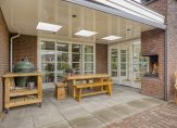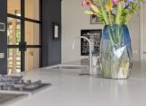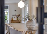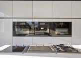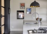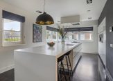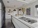 De luxe woonkeuken is een walhalla voor de kookliefhebber. Het grote kookeiland met bar nodigt uit om samen te borrelen of uitgebreid te tafelen. De keuken is volledig uitgerust met Miele-apparatuur: de nieuwste combimagnetron, combi-stoomoven, inbouwkoffieautomaat en vaatwasser. Ook de wijnklimaatkast, koelkast en plafondafzuiging zijn van Miele. Met de wokbrander, teppanyaki en inductiekookplaat is dit een keuken waar u zowel uitgebreid kunt koken als snel iets kunt bereiden. Het werkblad uit één stuk Corian en de vloer van Belgisch hardsteen geven de ruimte een luxe uitstraling.