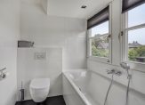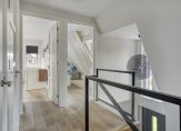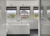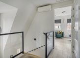 Op de eerste verdieping komt u uit op een heerlijk lichte overloop dankzij de aanwezigheid van een dakkapel. De vide en glazen trapafscheiding geven een moderne uitstraling. Er is toegang tot drie slaapkamers, een wasruimte en een tweede badkamer met vloerverwarming, compleet ingericht met ligbad, douche, wandcloset, wastafel en badmeubel. De slaapkamers zijn fraai afgewerkt met een houten vloer.
