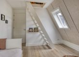 De grootste slaapkamer heeft een praktische vaste kastenwand met veel opbergruimte. Er is een vaste trap naar de tweede verdieping die in gebruik is als bergzolder. Tevens treft u hier de Nefit-combiketel en ventilatie-unit.