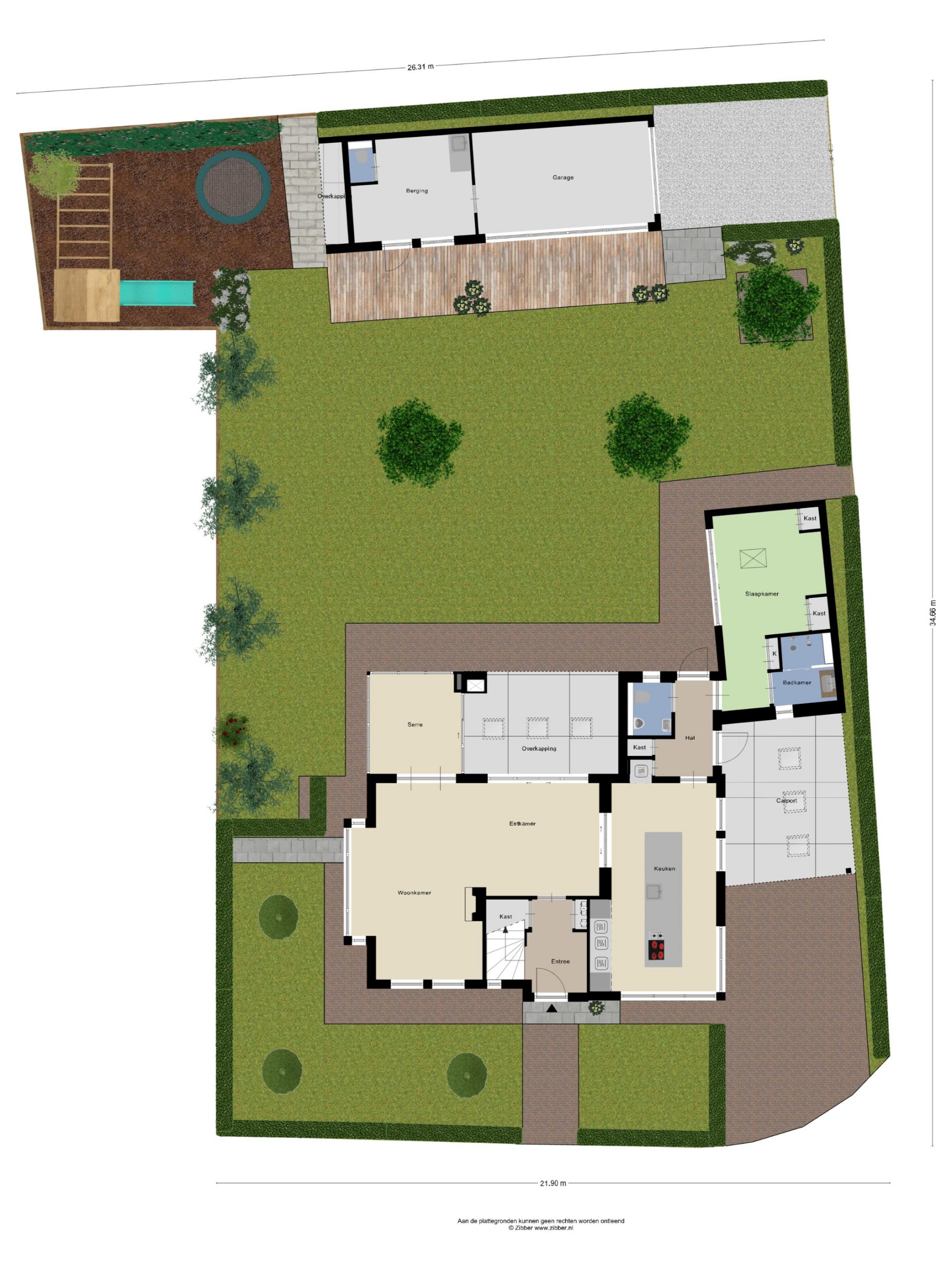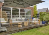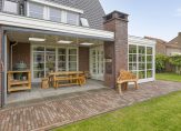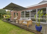 Achter de woning ligt een heerlijke tuin waar u tot in de avonduren kunt genieten van de zon. De tuin is aangelegd met een terras aan huis, een zonneterras achter in de tuin, een gazon, een speelhoek voor de kinderen en diverse boompjes. Parkeren van meerdere auto’s kan op de inrit naast de woning of de inrit voor de garage achter in de tuin. Het in 2021 nieuwgebouwde bijgebouw bestaat uit een garage met ruime berging, keukenblok en toilet. De garage is aan de tuinzijde voorzien van een glazen pui en is geïsoleerd, waardoor de ruimte voor allerlei doeleinden geschikt is. Denk aan een atelier, salon aan huis, thuiswerkplek, fitnessruimte of hobbyruimte.