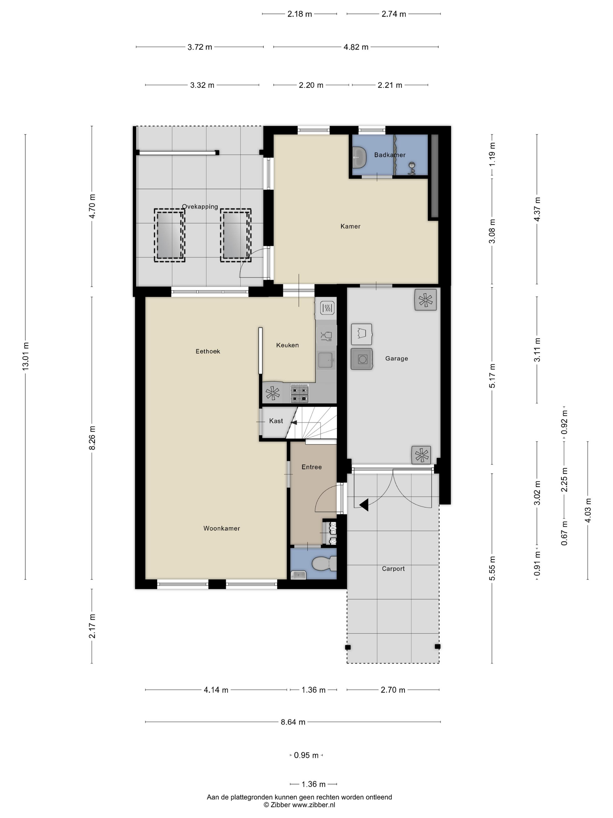 Hal met meterkast, nette toiletruimte met fontein en trapopgang. Vanuit de hal komt u in de woonkamer. Deze woonkamer is ca. 31 m² groot en afgewerkt met een plavuizen vloer. Vanuit de woonkamer heeft u zowel aan de voor- als achterzijde een groen uitzicht wat te danken is aan de vrije ligging. Er is een airco geplaatst voor een comfortabel binnenklimaat voor de warmere maar ook voor de koudere dagen. Onder de trap is nog een handige voorraadkast. De half open keuken is voorzien van een keurige hoekinrichting met natuurstenen aanrechtblad en diverse inbouwapparaten zoals een gaskookplaat, afzuigkap, combimagnetron, koelkast, diepvries en vaatwasser. Aan de tuinzijde is de woning uitgebouwd.