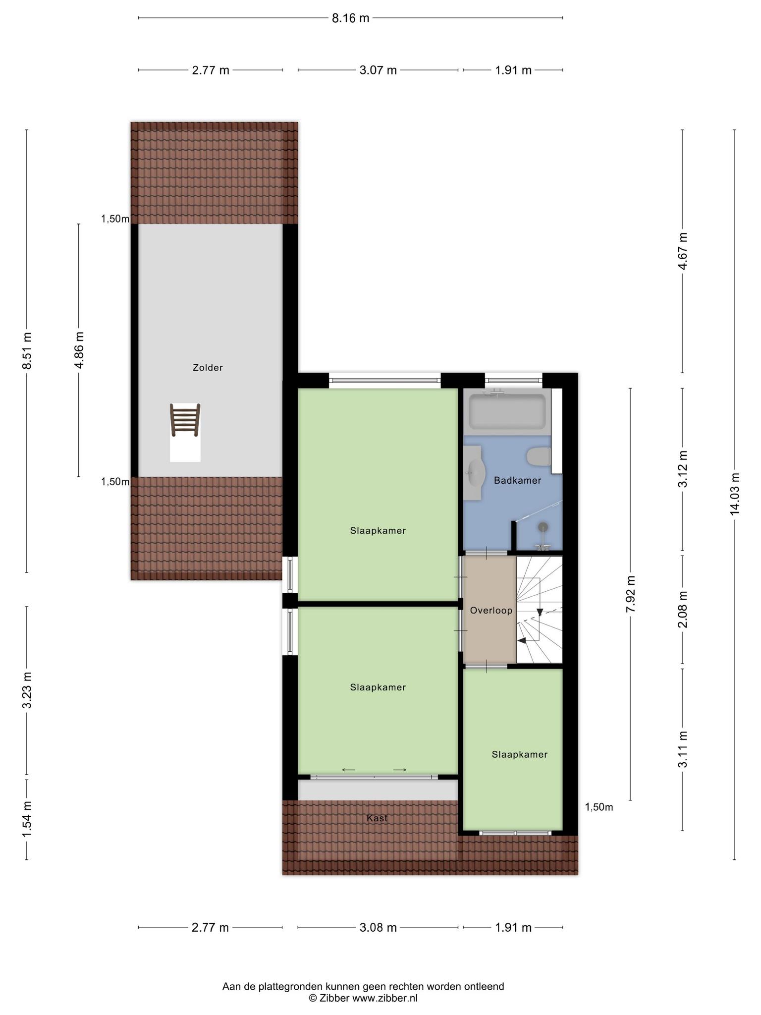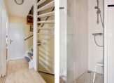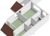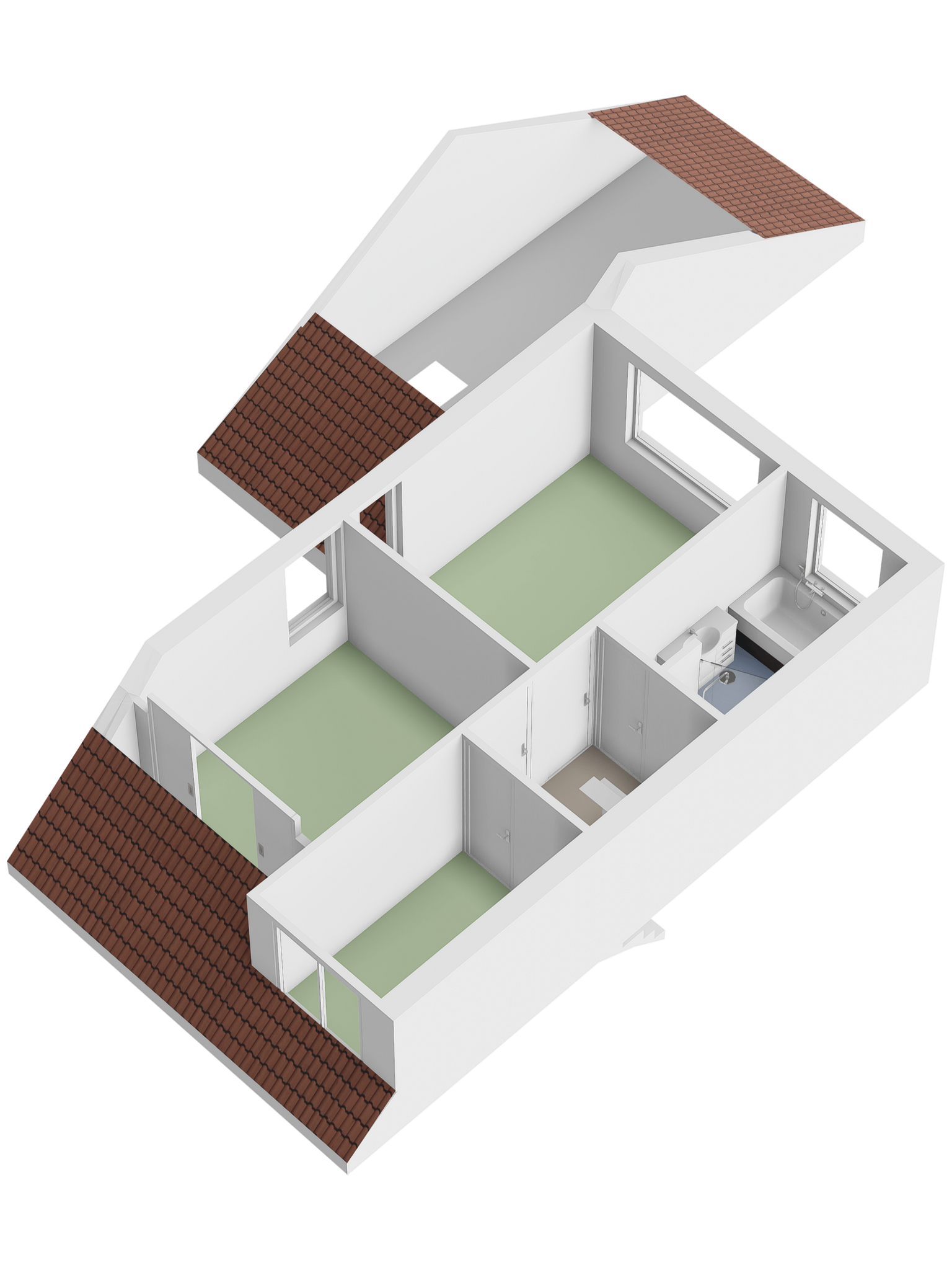 Eerste verdieping: middels een afgesloten portaal in de woonkamer komt u op de overloop welke toegang geeft tot 3 slaapkamers en de badkamer. De slaapkamers zijn allen afgewerkt met laminaatvloeren en respectievelijk ca. 13 – 13 en 6 m² groot. De keurige badkamer is extra groot vanwege de aanwezigheid van een dakkapel en is ingericht met een ligbad, douche, wandcloset en wastafelmeubel. Via de overloop is middels een vaste trap de tweede verdieping bereikbaar.