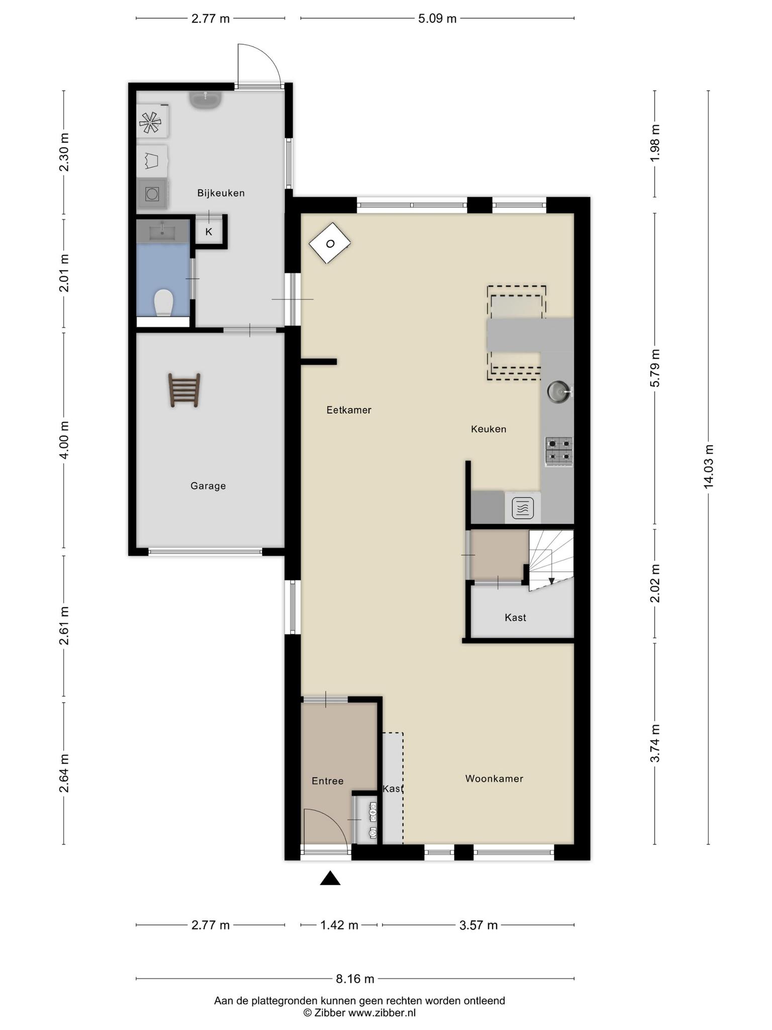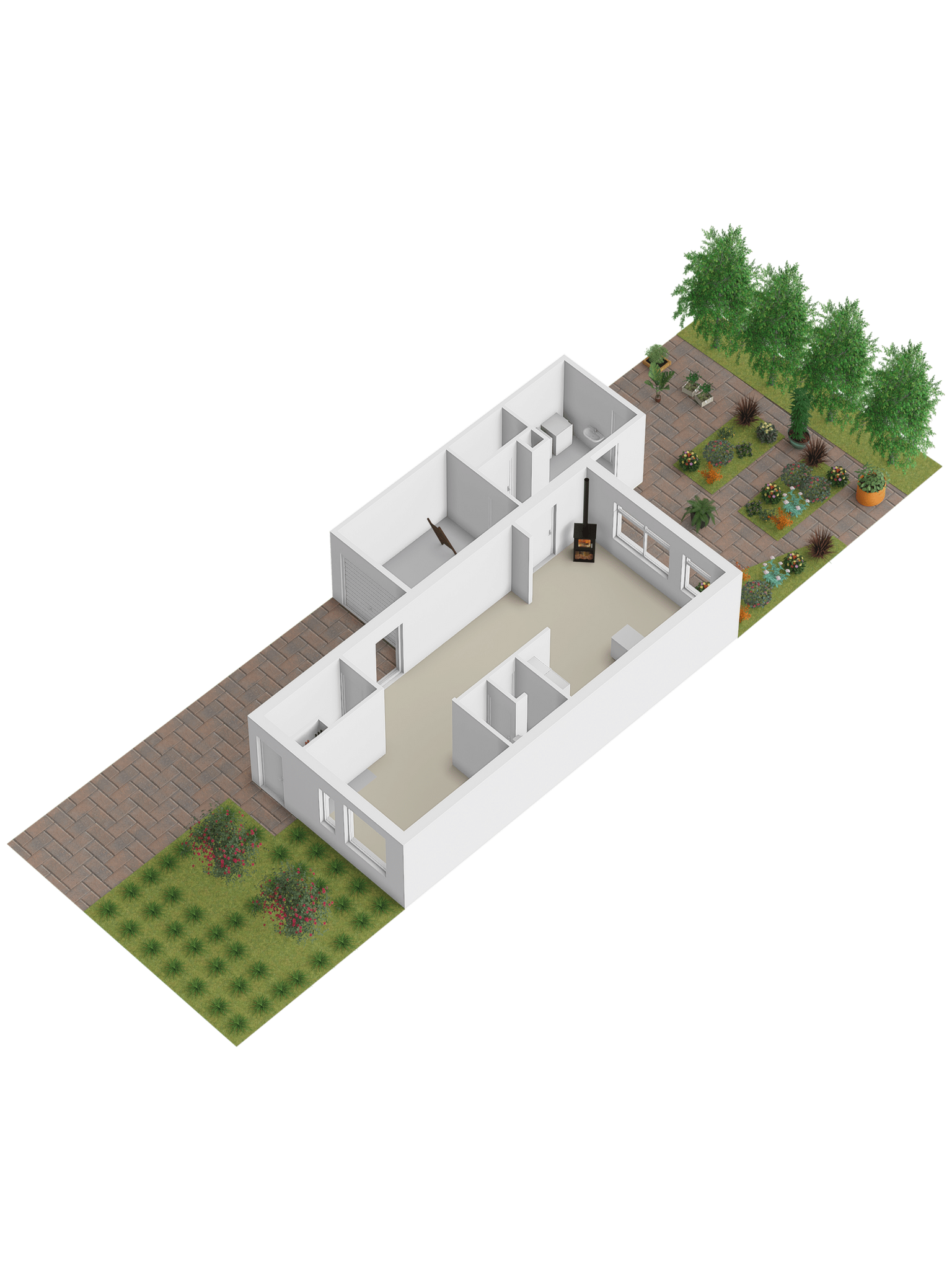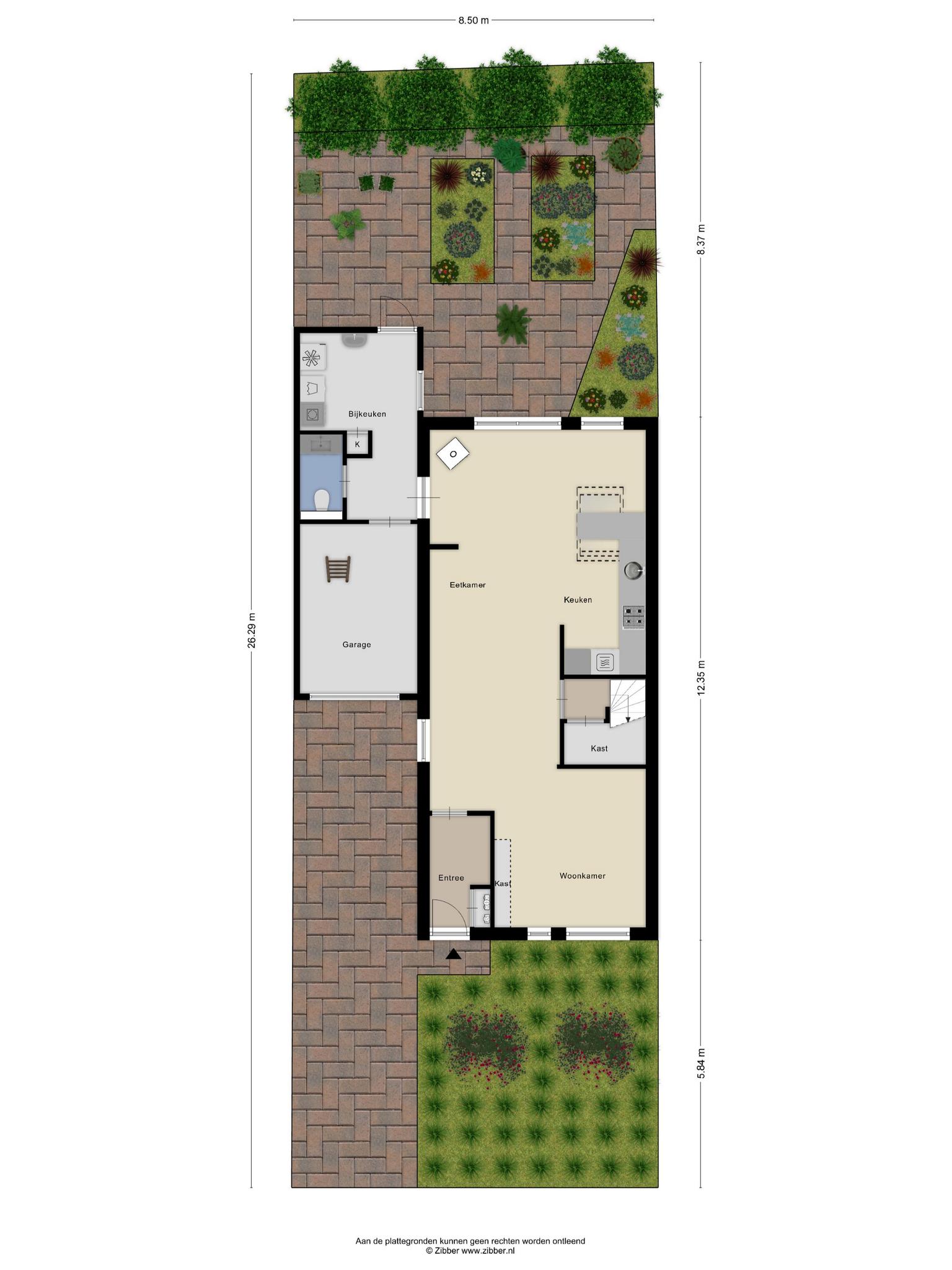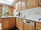 U komt binnen in de hal met meterkast (vernieuwde meterkast en glasvezel aanwezig). Vervolgens komt u in de royale woonkamer met open keuken, welke in totaal maar liefst 52 m² groot is. De woonkamer is afgewerkt met eiken houten vloerdelen. De keuken is aan de tuinzijde gesitueerd en u heeft hier een prachtig rustgevend uitzicht op de groene tuin. Door de aanbouw is de leefruimte groot en er is genoeg ruimte voor een riante eettafel waar u met een groot gezelschap kunt tafelen. De massief houten keuken in hoekopstelling is voorzien van diverse inbouwapparatuur zoals een gaskookplaat, magnetron/oven, afzuigkap, koelkast, kleine vriezer en vaatwasser. Vanuit de keuken is er toegang tot een praktische bijkeuken. Hier treft u tevens de toiletruimte met wandcloset en fontein. Er is volop bergruimte en ruimte om de was te doen. U treft hier de wasmachine-aansluiting en een uitstortgootsteen. Vanuit deze bijkeuken komt u in de garage/berging aan de voorzijde met bergzolder. Hier is genoeg ruimte voor het stallen van fietsen en overige spullen.
