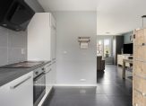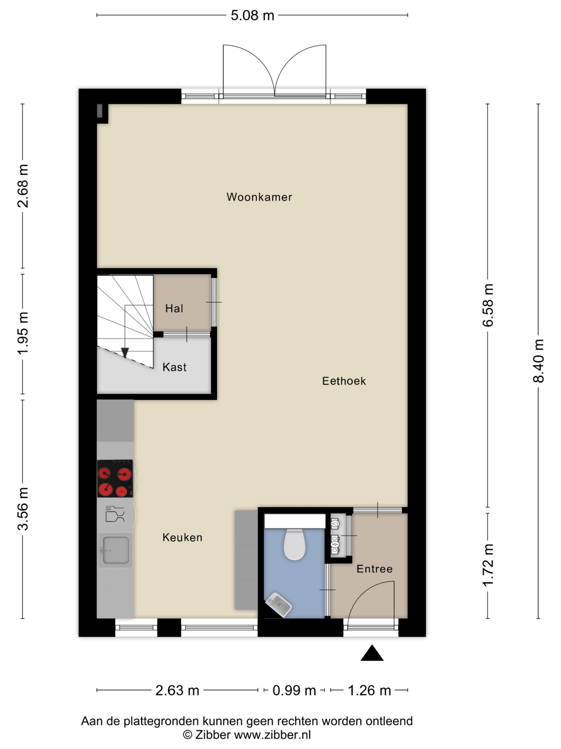 U komt binnen in een hal waar zich tevens de vernieuwde meterkast bevindt en een luxe toiletruimte met wandcloset, fontein en mechanische ventilatie. De indeling op de begane grond is flink verbetert. De woonkamer is nu aan de tuinzijde gesitueerd en de keuken is naar de voorzijde verplaatst. Deze keuken is in 2014 voorzien van een nieuwe inrichting met diverse inbouwapparatuur zoals een oven, vaatwasser, magnetron, koel-vriescombinatie en in 2023 nog vernieuwde inductiekookplaat, afzuigkap en kokend waterkraan (ter overname).