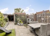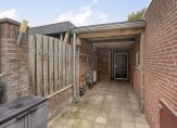 De tuin is onderhoudsvriendelijk aangelegd met grotendeels bestrating en enkele plantenbakken. De achtertuin biedt veel privacy door de vrije ligging aan de achterzijde. De voormalige garage is nu een grote berg-/hobbyruimte geworden welke is voorzien van vloer-, spouw-, en dakisolatie. Deze ruimte is dus ideaal voor opslag en hobby. Verder is er een poort om achterom te komen en een praktische overkapping waar uw fietsen droog staan.