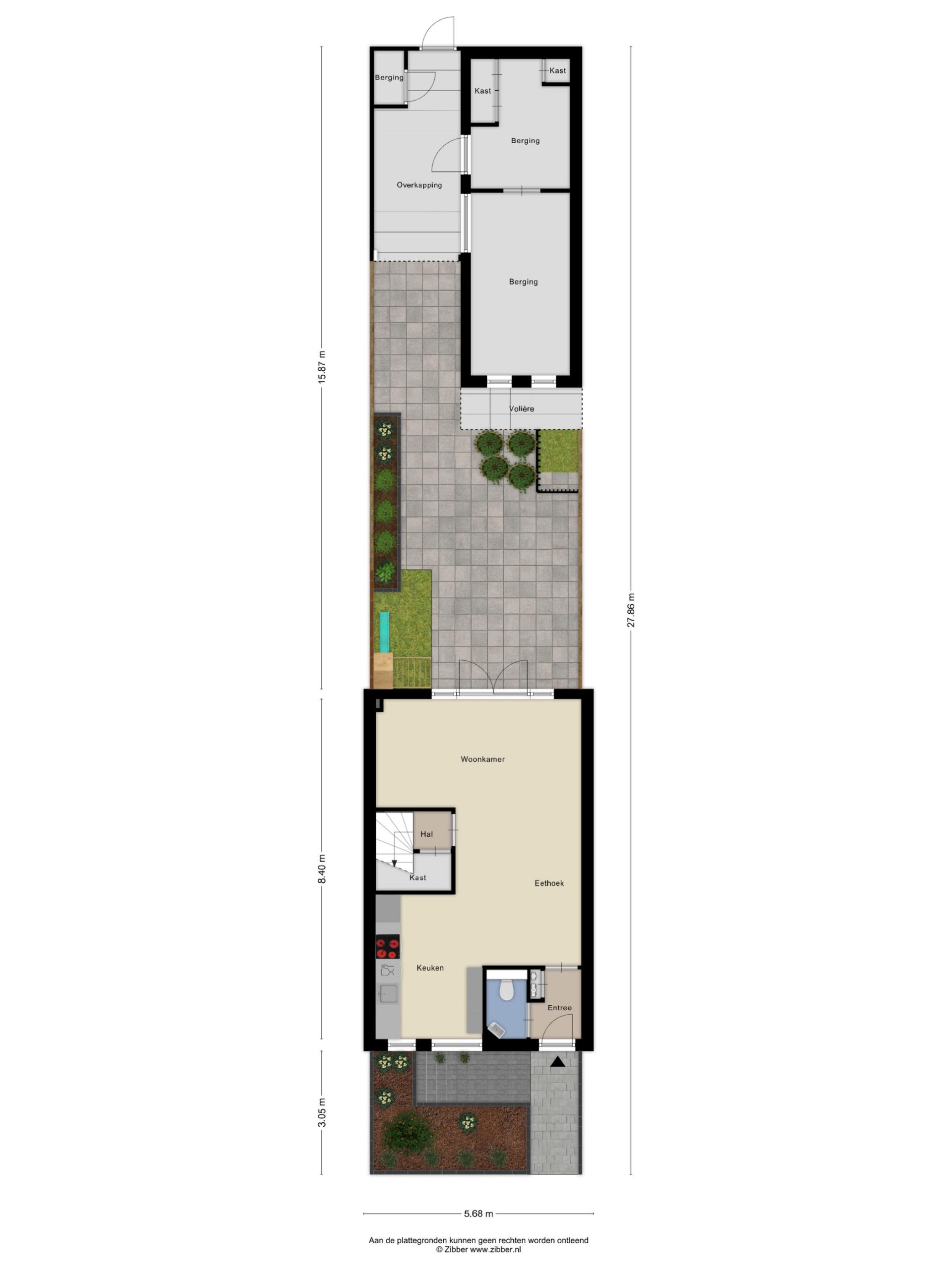 De berging (voormalige garage) in de tuin is 20 m² groot en verder is er nog een afdak aangebouwd.